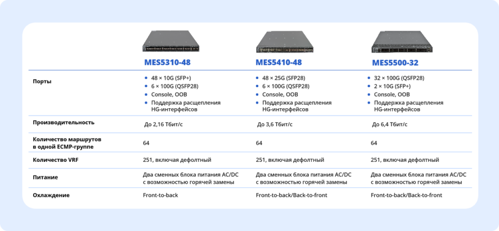 - Leaf-коммутаторы MES5310-48 и MES5410-48;