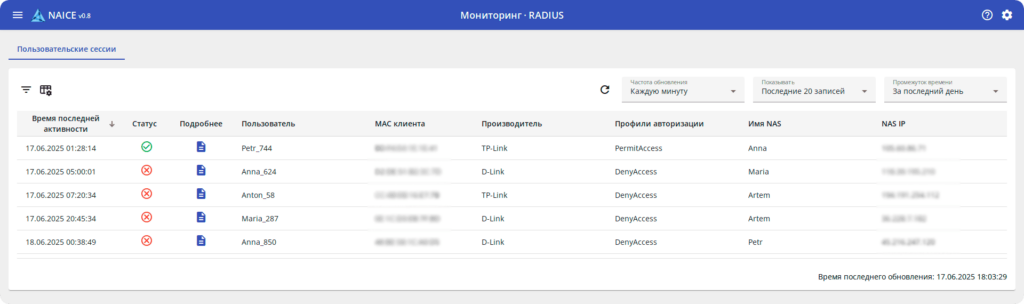 Пользователь авторизуется в сети привычным способом – через корпоративные учётные записи. NAICE получает информацию о его правах из внешнего источника и применяет соответствующие политики доступа. Это важно для крупных организаций, где могут быть тысячи учётных записей.