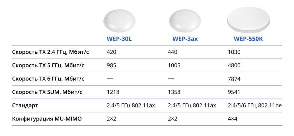 Ниже представлены сравнительные показатели производительности WEP-550K и устройств предыдущего поколения (Wi-Fi 6).