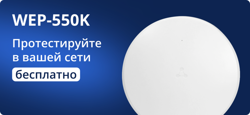 И вот уже в апреле в производство запускается WEP-550K – отечественная indoor точка доступа Wi-Fi 7 для бизнеса, созданная и выпущенная в России. Проверьте WEP-550K в деле: подайте заявку на бесплатный тест в корпоративной сети прямо сейчас. Контактные данные — в конце статьи. Переходите на Wi-Fi 7 с российским вендором: современные технологии дополнены доступной техподдержкой на всей территории страны.